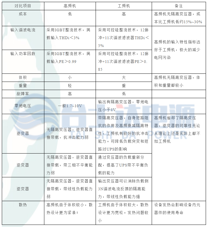 工频UPS:制造成本高(含大型变压器),运输和安装成本也较高。