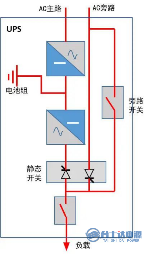 前面列举了并机冗余模式,最后看看UPS单机的原理: