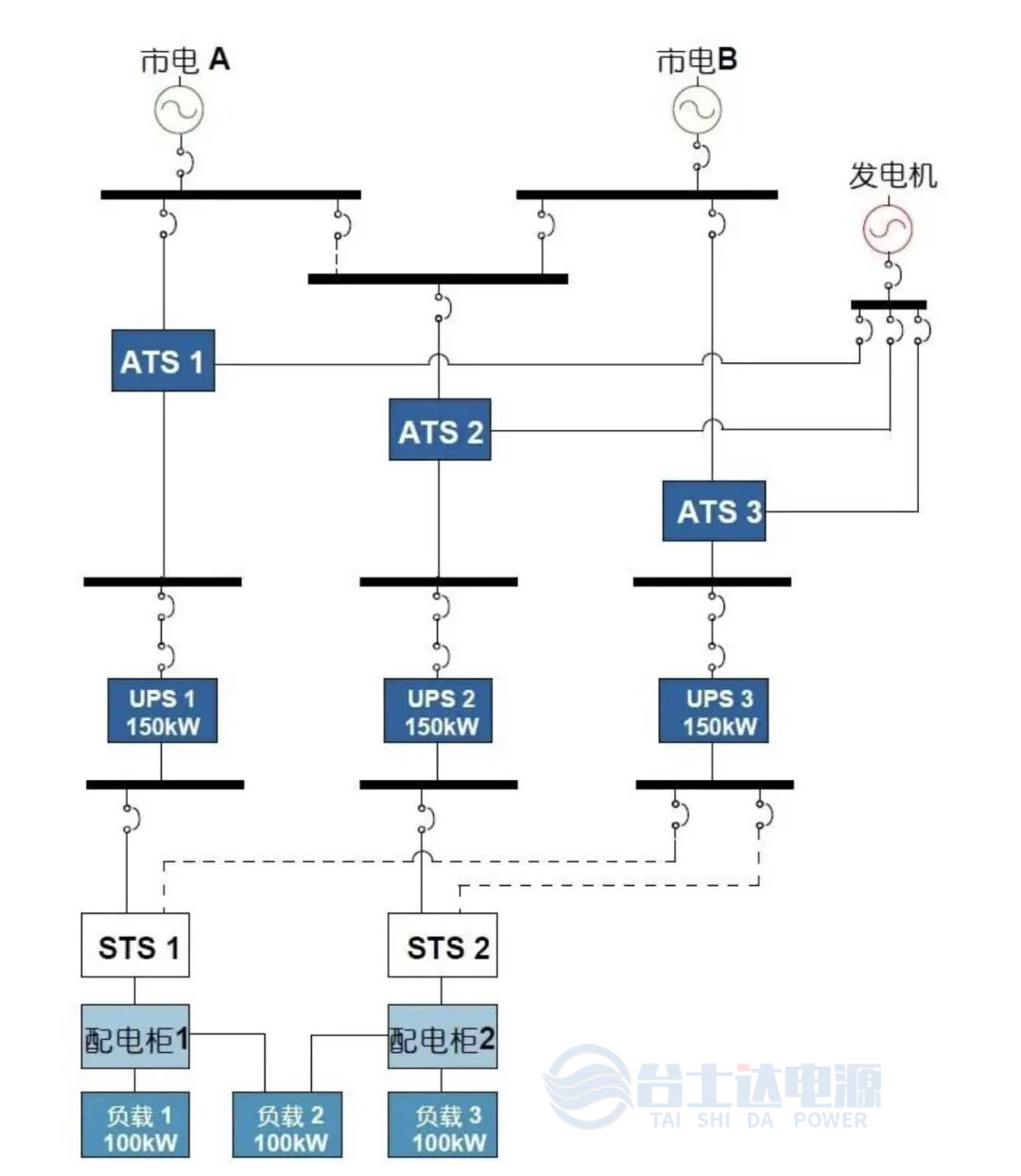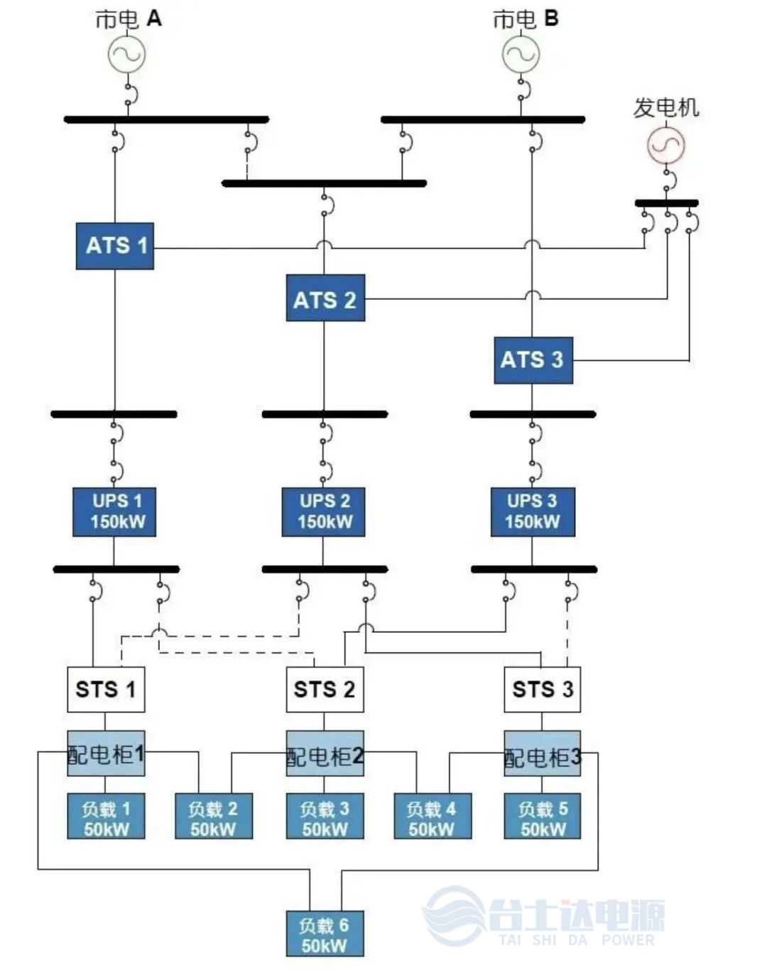 UPS(不间断电源)系统是保障关键负载持续供电的核心设备,其配置方案需根据负载重要性、可靠性需求及预算综合选择。以下是7种主流供配电配置方案,涵盖架构特点、适用场景及优劣势分析: