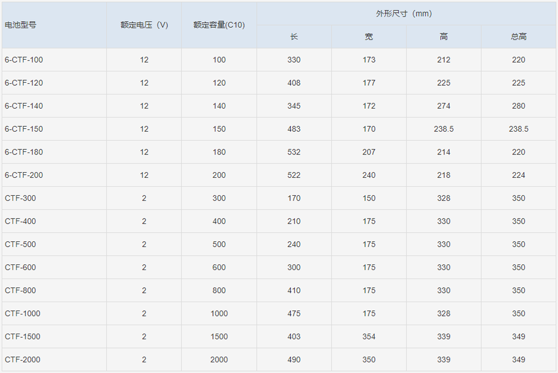 CTF系列电池,采用深循环铅膏配方和高耐腐蚀的多元合金板栅,及特殊的排气结构和密封技术,具有深循环使用寿命长,使用安全可靠,极低的自放电率,安装灵活、维护便捷等特点。